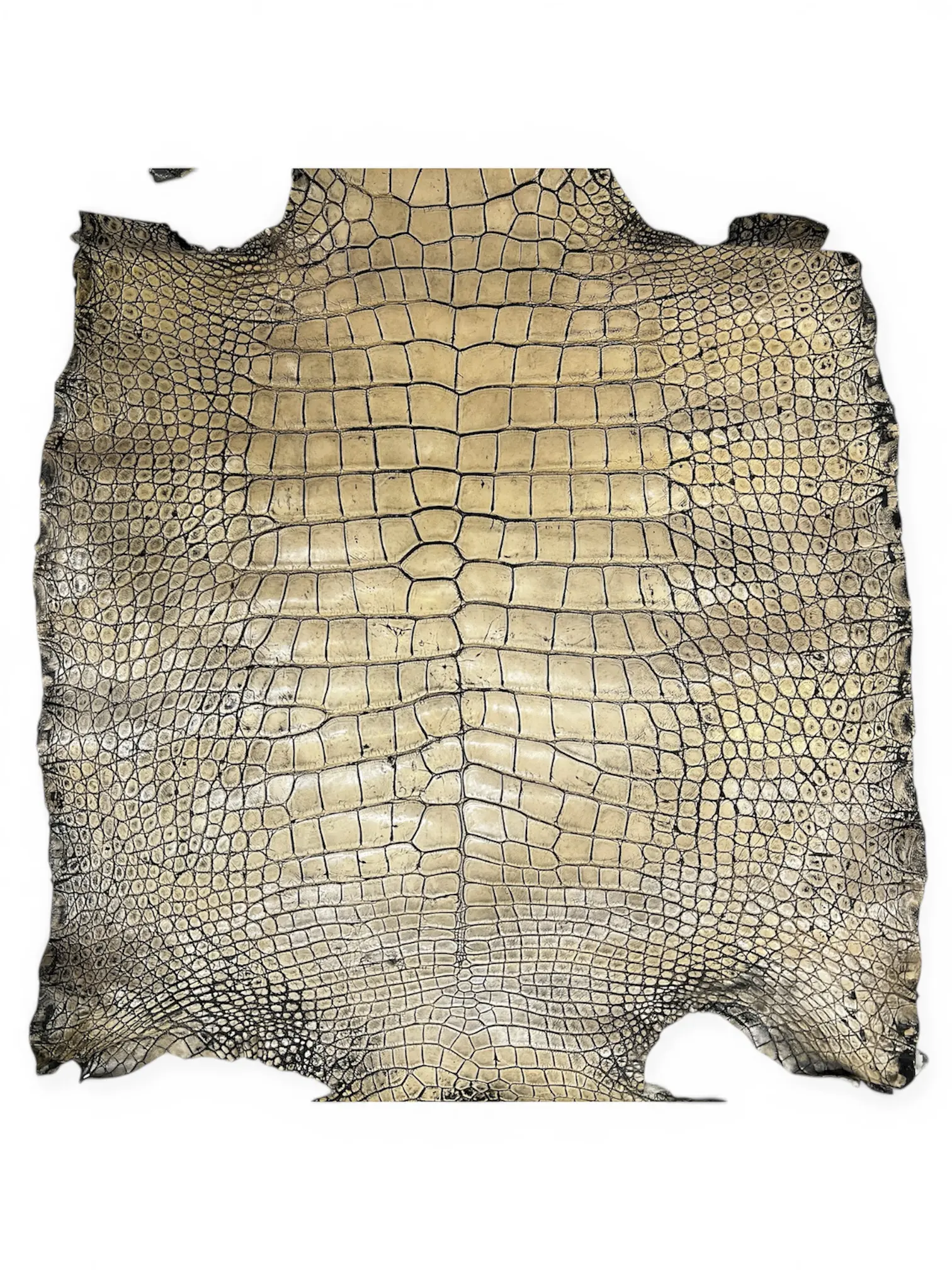 The “belly” is the largest piece of leather derived from an alligator or crocodile skin, this, along with its scale pattern, contributes to this portion of the skin being thought of as the “premium cut” of alligator and crocodile leather. The center of the belly has larger, generally rectangular scales. The sides of the belly, featuring smaller rounded scales, are referred to as the “flanks”.